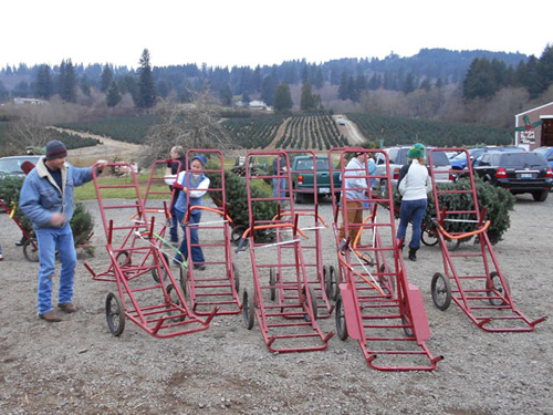 Our fabulous tree carts make transportation of that perfect tree to the loading area as easy as can be! And yes, we have saws!